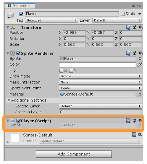 유니티로 돌아와, Player 오브젝트를 선택해주세요.