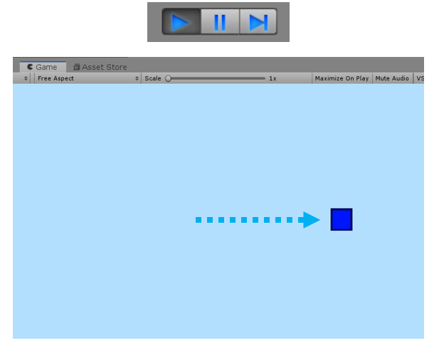시작 버튼을 눌러 게임을 실행해보세요. 캐릭터가 오른쪽으로 움직일 것입니다.