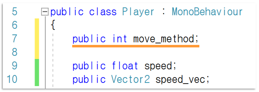 우선 위와 같이 정수형(int) 변수를 추가해주세요.