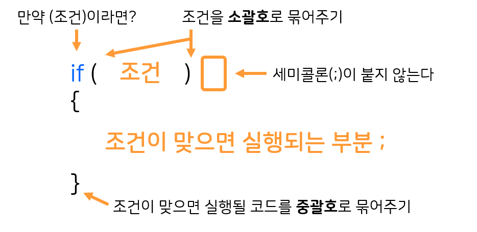 중괄호{}로 묶여있는 부분이 실행됩니다. (여러 줄일 시 윗줄부터 아래로 실행됨)